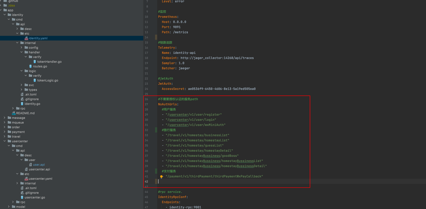 1、判断当前访问的路由(usercenter/v1/user/detail )是否需要登录。这里的路由是否需要登录,可以在identity-api中配置,代码已经实现好了。